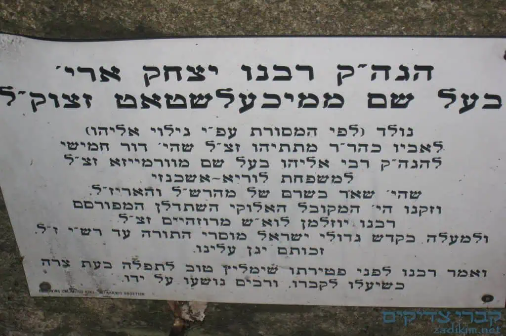הצדיק נולד בשנת תקכ"ח ונפטר בצום גדליה, והבטיח כי כל המתפלל על קברו תתקבל תפילתו.